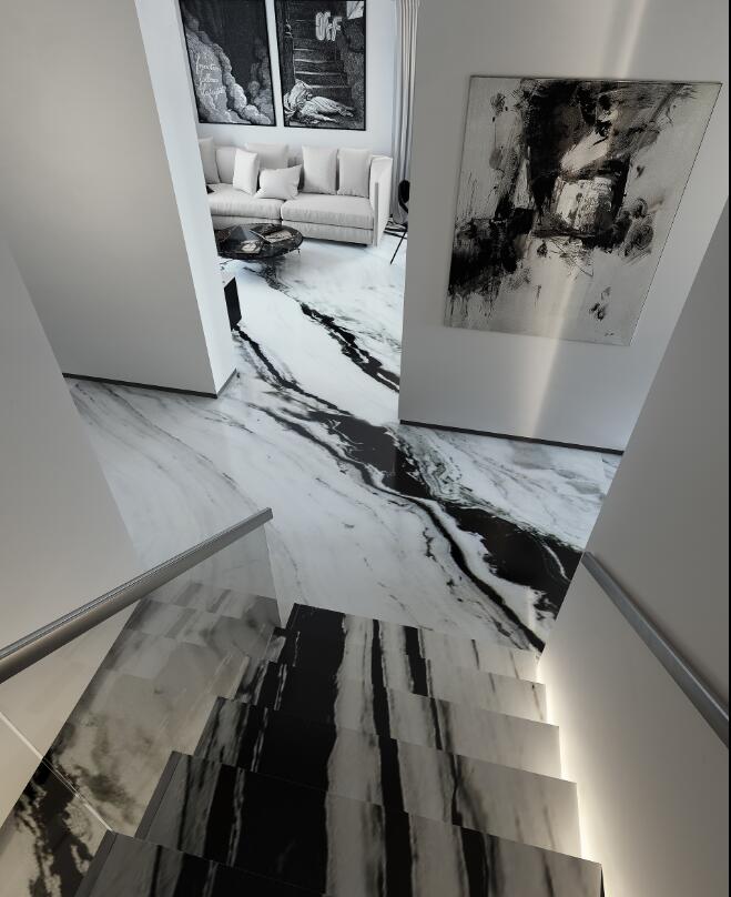 Panda White is a white marble with a dramatic pattern. Quarried in China, widely use for walls and flooring, countertops decoration.
